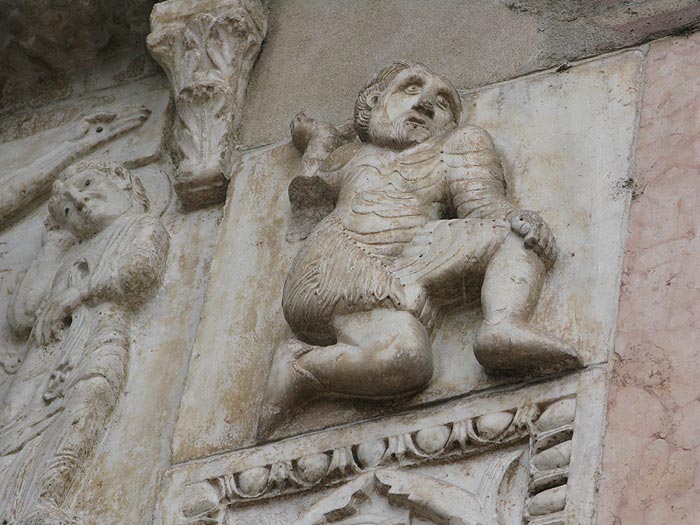 Galerie photos : la basilique de saint Zénon, détails du prothyron, des bas-reliefs de la façade et de la lunette du portail.