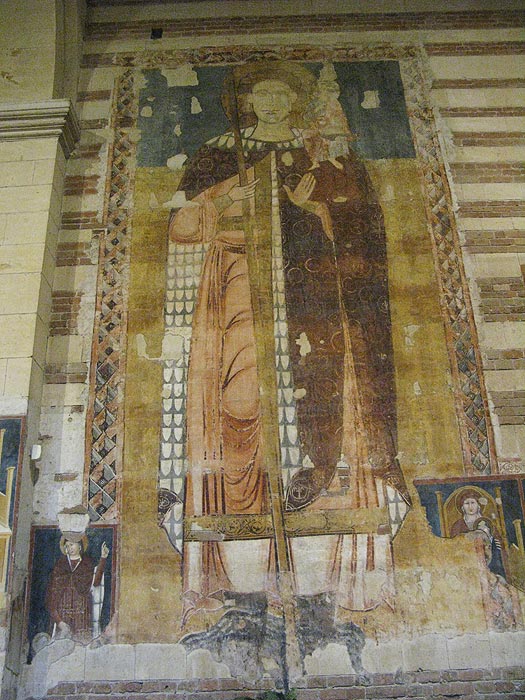 Ce retable (1457-1460) est célèbre à juste titre : Mantegna le peignit à l’âge de 26 ans, à Padoue. Le panneau central représente la Crucifixion et le Calvaire, les panneaux latéraux représentent le Christ priant au Jardin des Oliviers, et la Résurrection. L’extraordinaire de ce retable est à la fois cette puissance spirituelle, et l’étonnant ciel bleu à peine voilé de quelques nuages blancs au-dessus de la Crucifixion. Puis vous passez sous une balustrade et l'abside gothique au plafond en carène de navire. Un escalier vous mène à la crypte, qui se compose de huit allées, de cinq travées, et dotée de 49 colonnes. Là repose le corps de l’évêque Saint Zénon. Enfin, sortant de la basilique, apaisez vos émotions dans le petit cloître, rénové au XIIIème siècle, dont les arcades sud sont romanes et nord gothiques. Oui, Vérone est l’une des toutes premières villes d’Italie, et San Zeno l’un de ses tout premiers chefs-d’œuvre !