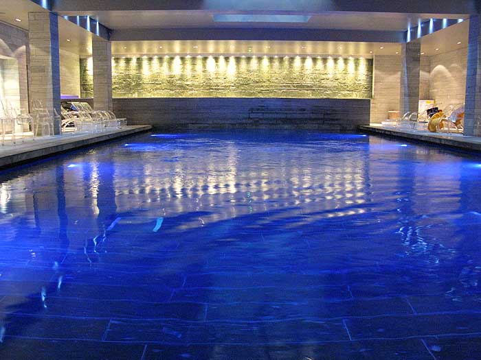 Nous mentionnions la piscine intérieure et son « coup d’œil » offert sur le hall, mais il n’y a pas que pour cela qu’elle vaut le détour. Très grande, chaude, dotée d’un éclairage doux et reposant, c’est un vrai bonheur d’autant que vous pouvez en profiter à l’heure que vous voulez, puisque vous en ouvrez la porte d’accès à l’aide de votre carte de chambre.