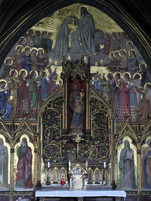 Revenons-en à l’église elle-même, où nous sommes entrés après avoir admiré le porche. Nous avons apprécié, outre l’architecture, le retable flamand du XVIème siècle, la statue polychrome de Saint-Germain (XVème siècle), les vitraux anciens du transept et le triptyque marial du XVIème siècle. Donc, si vous allez voir le Louvre et ses environs, ne manquez pas cette église, intéressante aussi bien pour ce qu’elle recèle que pour ce qu’elle représente dans l’histoire de France.