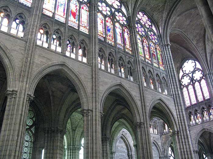 C’est évidemment l’intérieur qui frappe les regards. L’église est longue de 108 mètres, large de 39 mètres au transept et haute de 29 mètres. Outre l’élégance et l’harmonie de la construction, vous êtes immédiatement saisi par les tombeaux. Vous passez entre les gisants (ainsi étaient ornés les tombeaux des rois et des nobles de premier rang jusqu’à la Renaissance), le plus souvent par groupes, les noms les plus célèbres de l’histoire de France défilant sous vos yeux. Quelques célèbres personnages, tels Du Guesclin, ont leur place parmi leurs seigneurs. Il serait fastidieux de citer ici tous les noms des rois et reines gisant paisiblement depuis des siècles, mais sachez que les Mérovingiens, les Carolingiens, les Capétiens, les Valois et les Bourbons (Louis XVI et Marie-Antoinette) sont réunis dans la même éternité de pierre.
