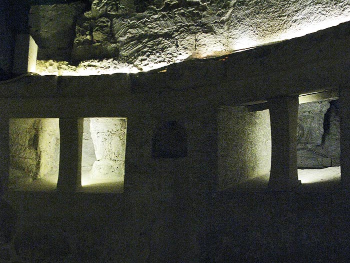 Basilique Saint-Denis, la crypte archéologique - au premier plan, l'emplacement de la sépulture de saint Denis.